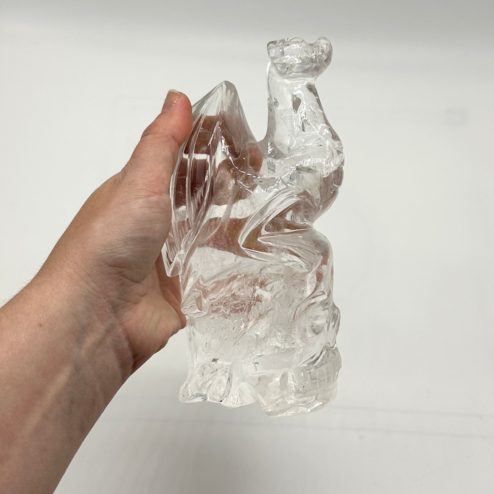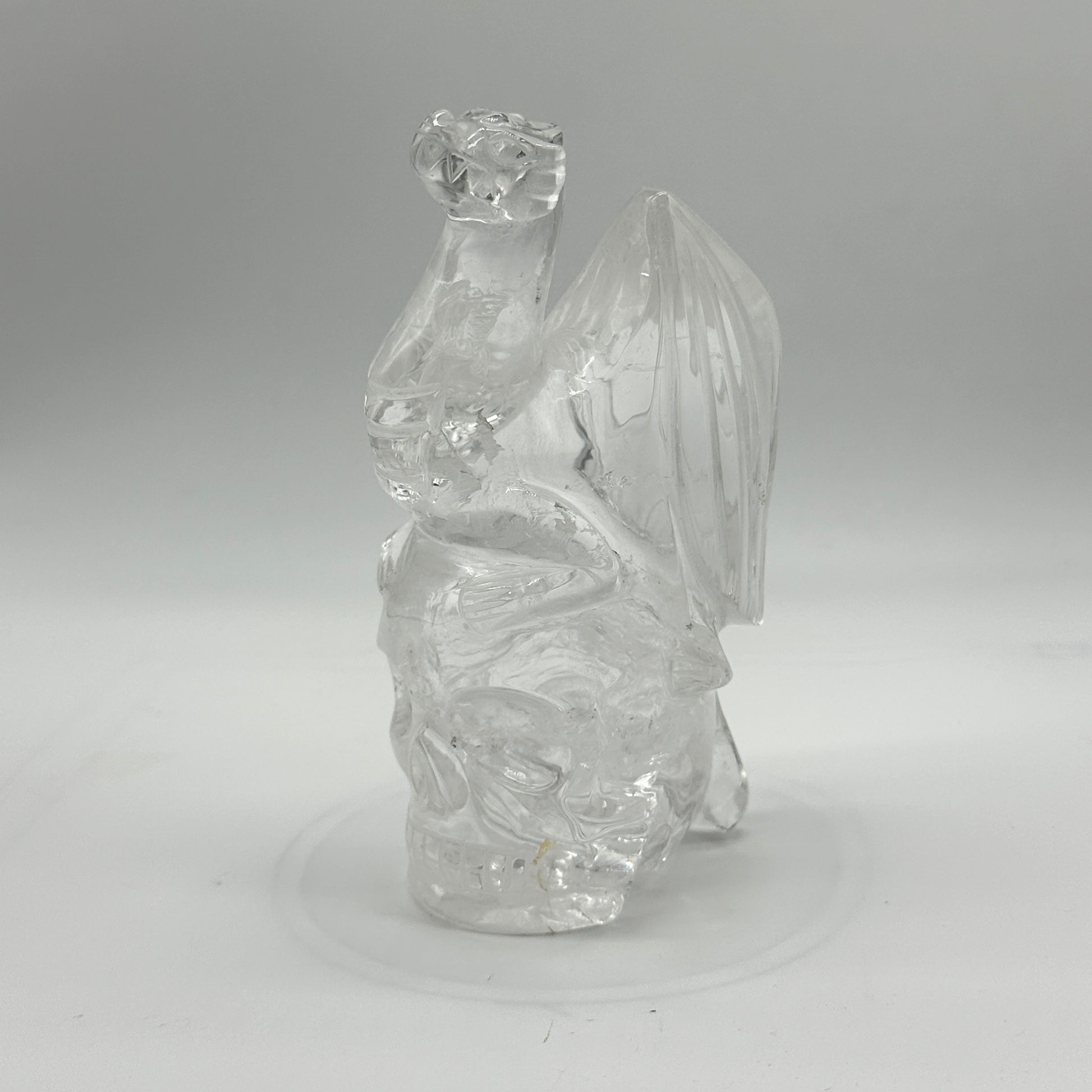 - Energy Amplification in Your Space: Place this Clear Quartz Dragon and Skull sculpture in a prominent area of your home, office, or meditation room to radiate high-vibrational energy throughout the space. Its amplifying properties will enhance the energy in any environment.